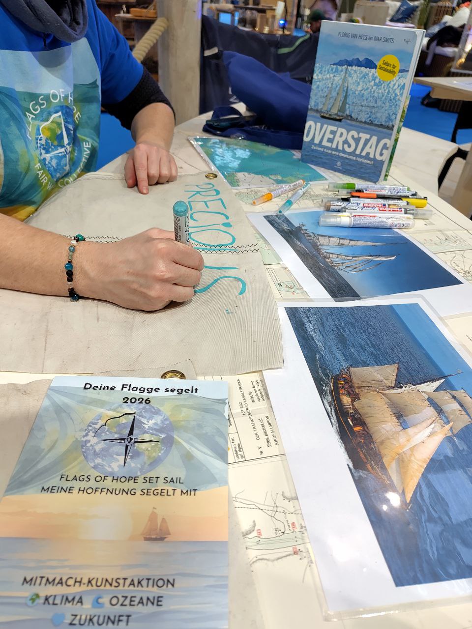 That question has been guiding me through countless conversations, workshops, and moments at sea – and it is the heart of Flags of Hope, a participatory project that transforms personal visions into a moving, visible statement for the ocean.